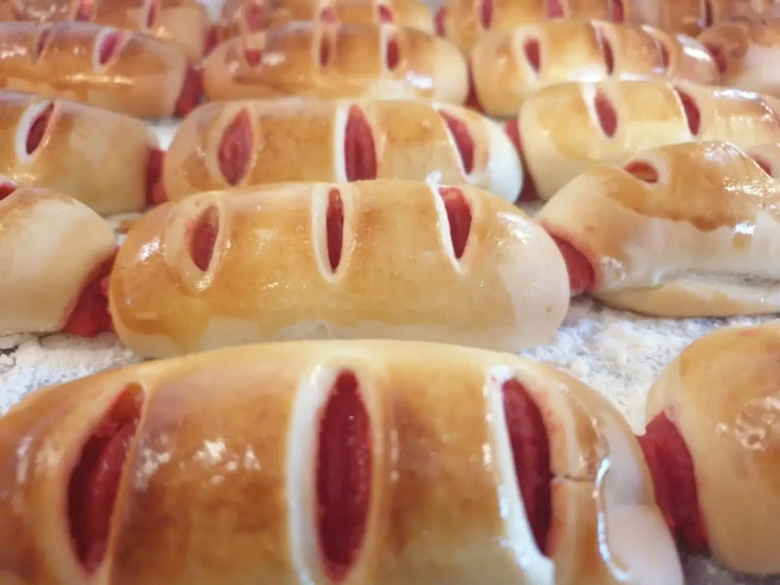 Vibrant red filling encased in sweet bread. Ten pieces.