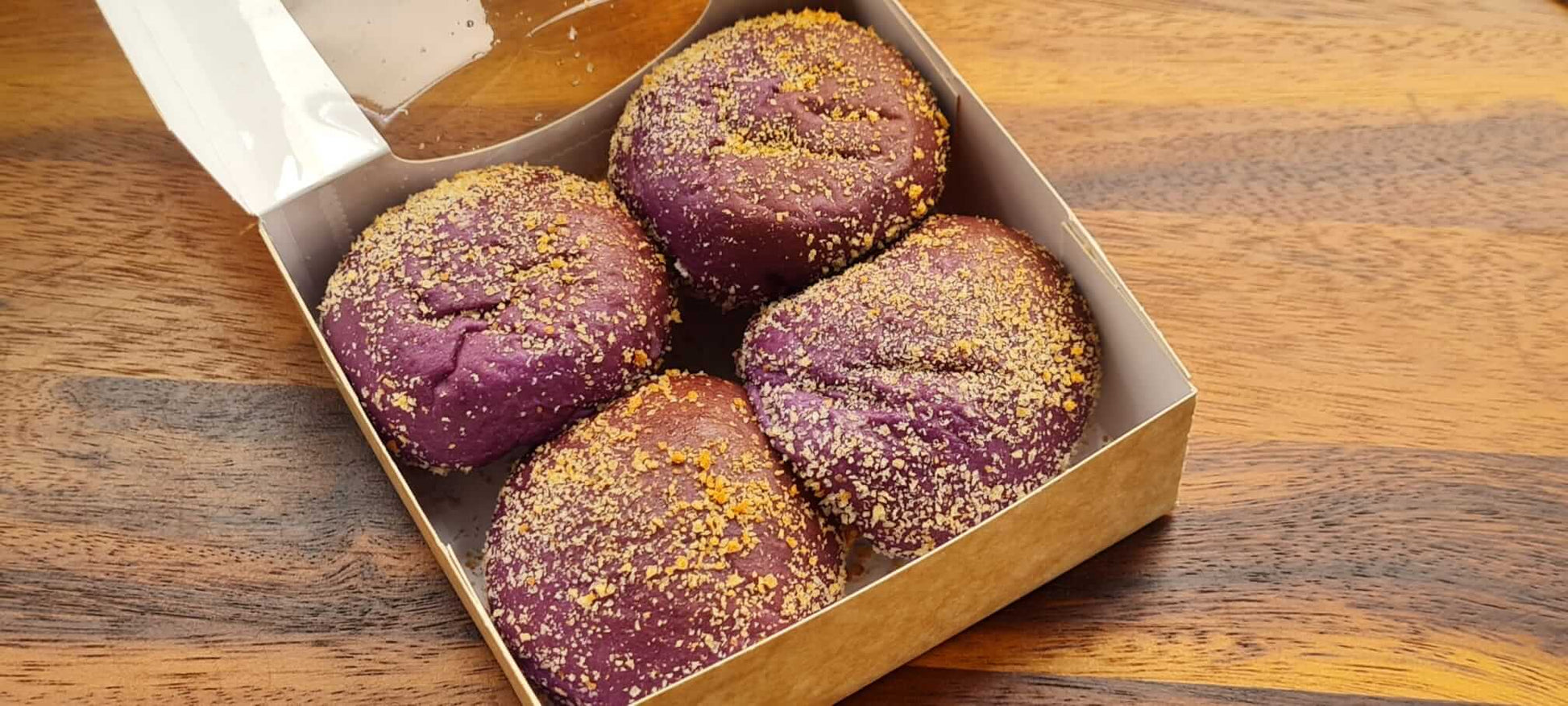 A twist on the classic Filipino bread roll. Ube-yam flavoured bread filled with cheese, packaged in bitesized portions.